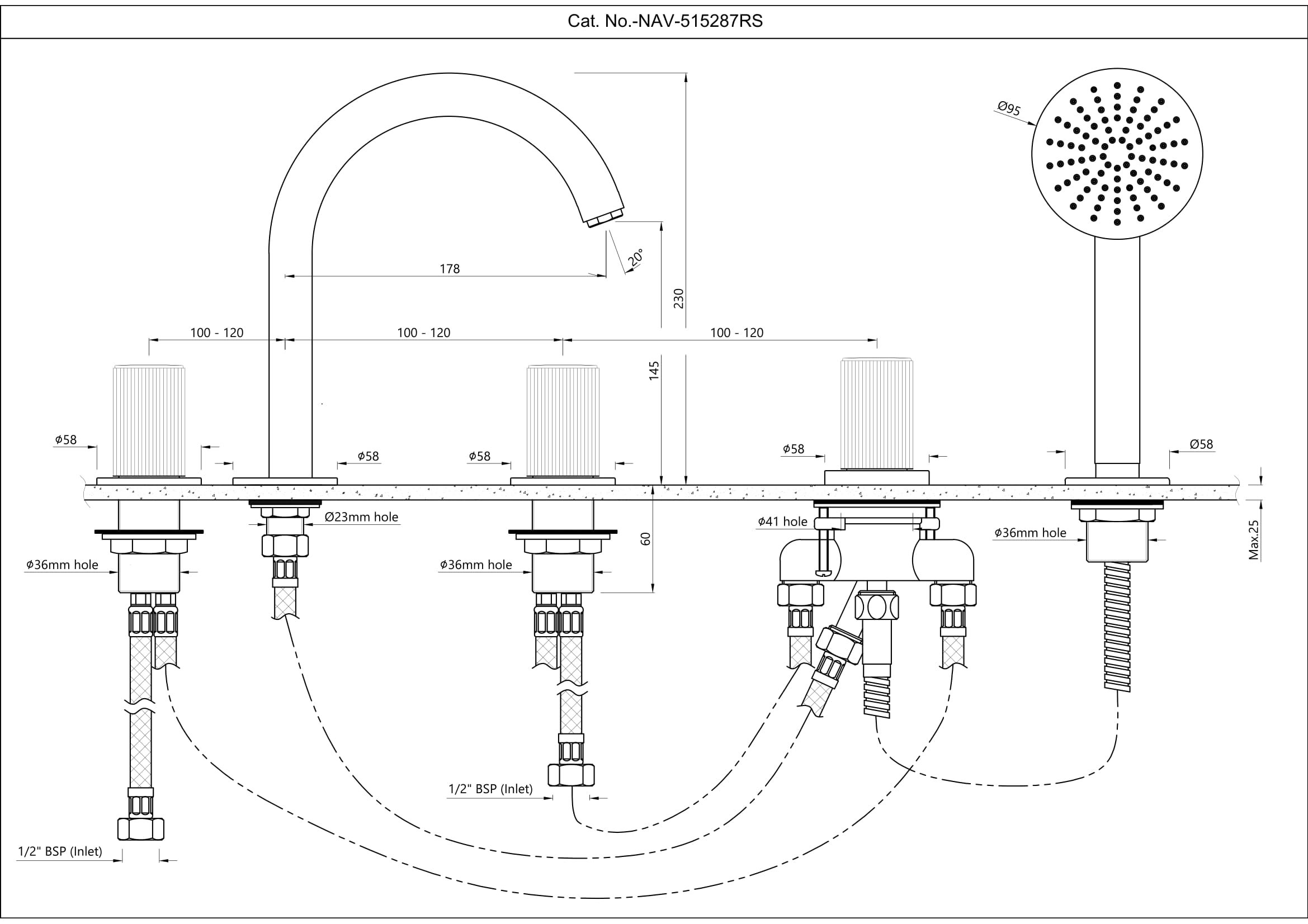 5-Hole Bath & Shower Mixer with Round Spout, Deck Mounted